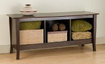 With its sleek and sophisticated design, the espresso finished Manhattan Collection offers you a designer product at an affordable cost. These hybrid products combine solid wood legs with laminated composite wood tops and sides to create stability and affordability with style. Drawers run smoothly on metal roller glides and have high plywood sides for ample storage. Solid knobs with a brushed nickel finish complete the products.